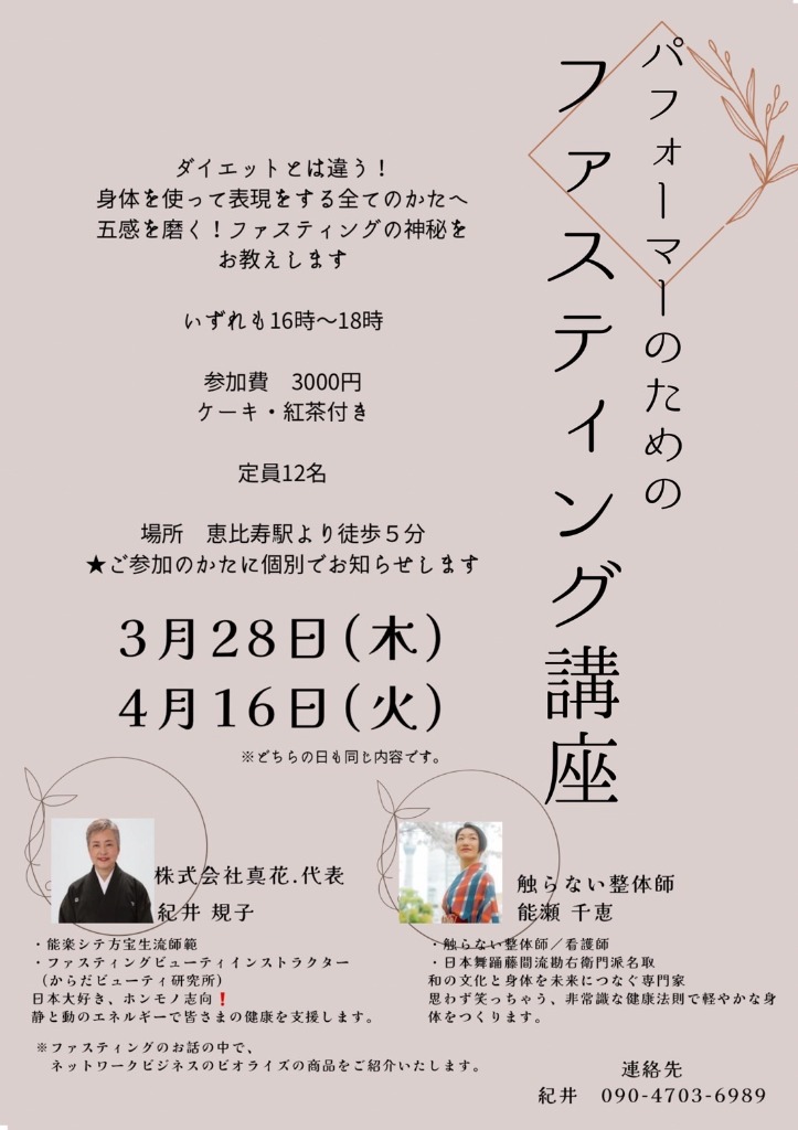 3月28日(木)16時~18時 恵比寿駅から徒歩5分